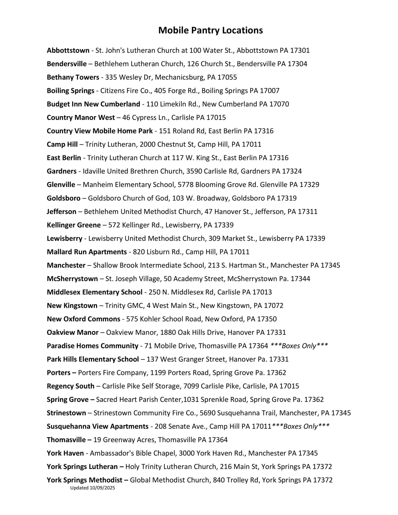 The Mobile Food Pantry is open to everyone, no appointments necessary, simply show up during the scheduled times to get enrolled and receive food!